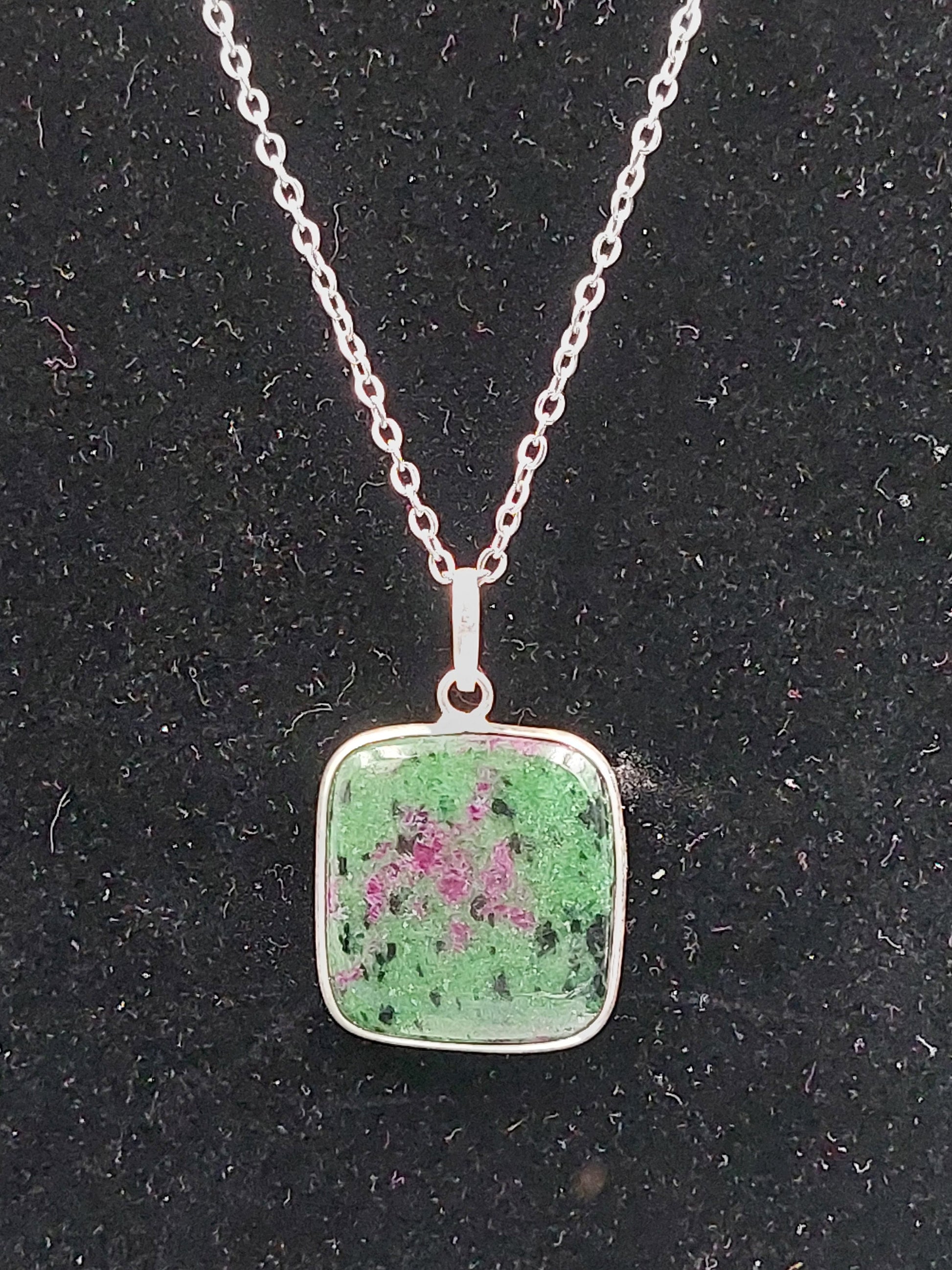 Ruby Zoisite Crystal Necklace Sterling Silver 925