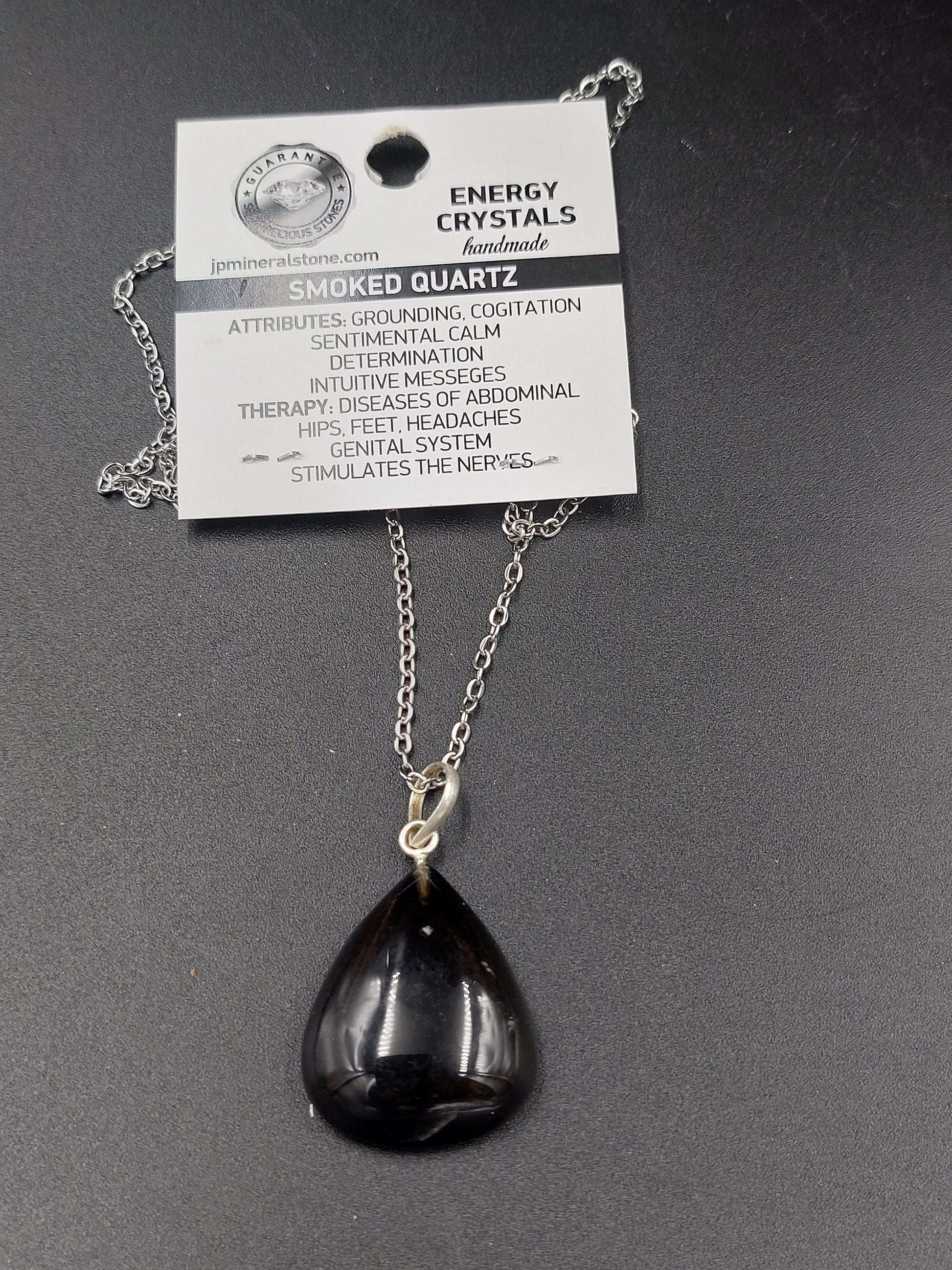Handmade Luxury Smoked Quartz pendant Cabochon Cut polished mineral stone.