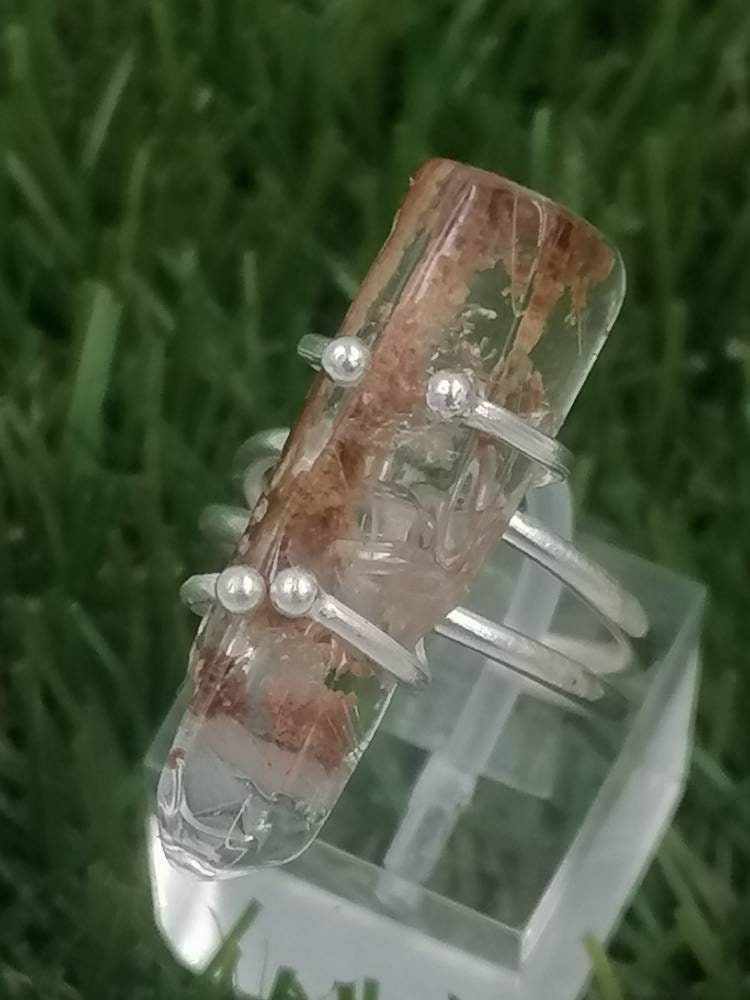 Sterling silver 925 ring with natural gems crystals qyartz garden oxidation of hematite faceted cut