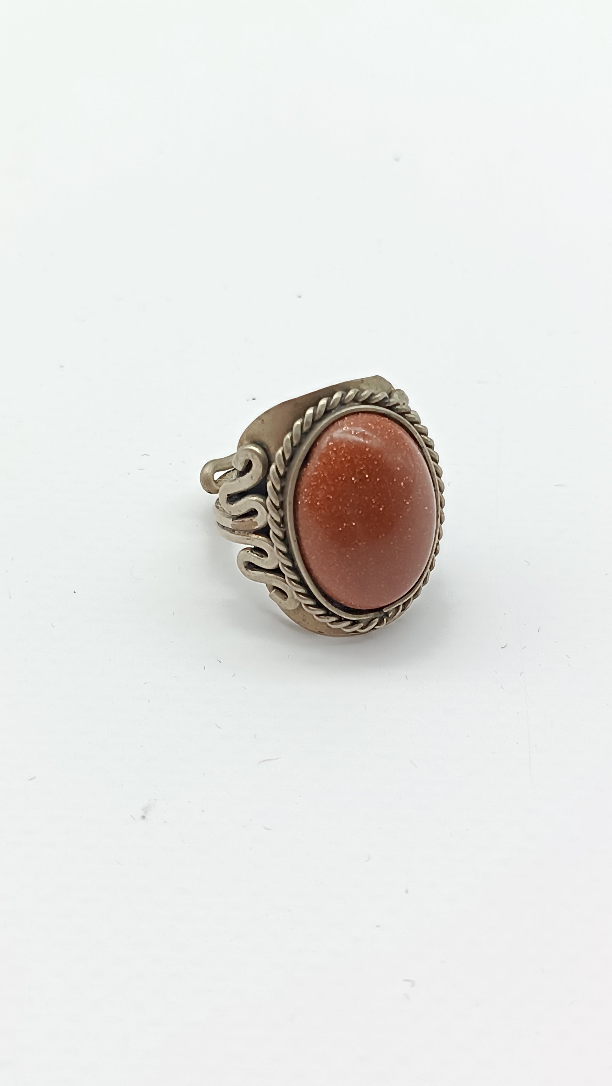 Sun stone alpaca metal cabochon cut Crystal Healing Ring - Master Healer, Chakra Alignment, Aura Protection, Amplifier